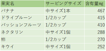 バナナは他の果物と比較してもカリウム含有量が多いことがわかります。