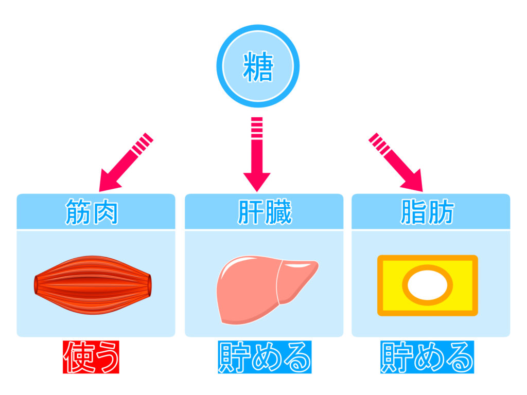 血糖値急上昇➡インスリン分泌➡インスリンが脂肪合成を促進➡余った血糖は脂肪として蓄積