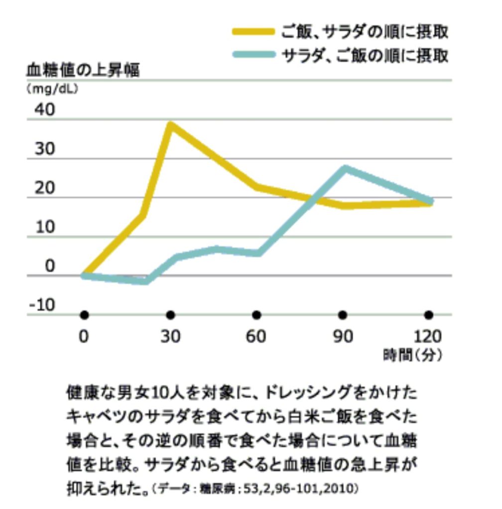 朝食を血糖値の上がりづらい食事に変えると効果が高まるそうです。