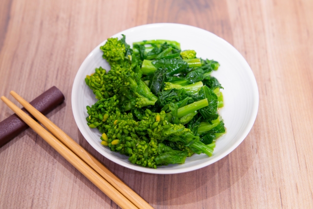 ビタミンCの含有量は、ほうれん草の約4倍含まれています。ビタミンB群、鉄、食物繊維なども多く含み、皮膚や粘膜の抵抗力を高めて風邪や感染症の予防、便秘予防に効果的。