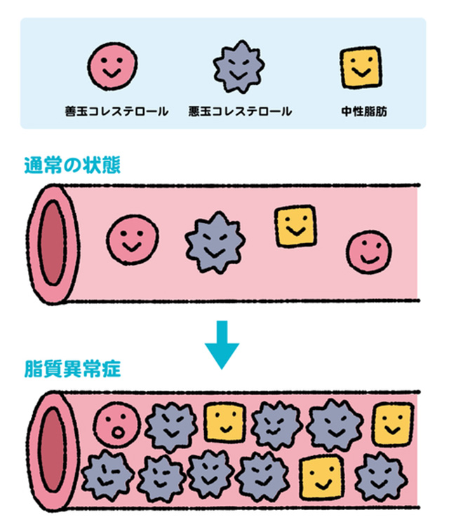 摂取量が多くても少なくても動脈硬化などの原因となるので、適量の摂取が必要です。