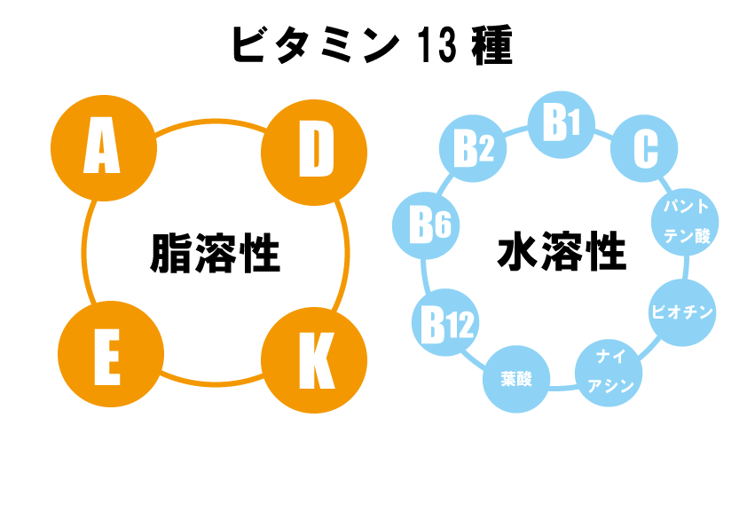 ビタミンには水溶性と脂溶性があります。水溶性ビタミンは水に溶けるため、過剰にとっても尿として体外に排出されます。脂溶性ビタミンは体外に排出されず、脂肪組織や肝臓に蓄積され、毎日少しずつ消費されます。