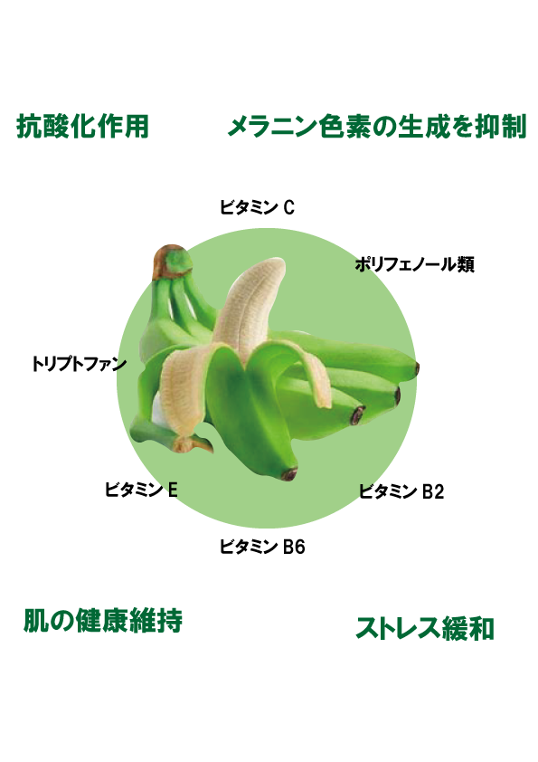 バナナはビタミンB群のみならず、美肌に効果的なあらゆる栄養素を兼ね備えています。